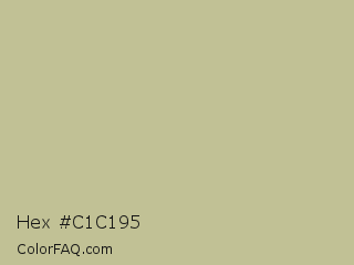 Hex #c1c195 Color is a light yellow color and the nearest color is Yuma #cec291. Hex code #c1c195 and RGB value is rgb(193,193,149). In RGB color space, this color is composed of 76% red, 76% green, 58% blue, In CMYK color space, this color is composed of 0% cyan, 0% magenta, 23% yellow , 24% black , In HSL color space, this color has a hue angle of 60° , 26% saturation and 67% lightness.