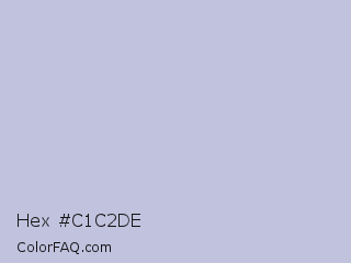 Hex #c1c2de Color is a very light blue color and the nearest color is Blue Haze #bfbed8. Hex code #c1c2de and RGB value is rgb(193,194,222). In RGB color space, this color is composed of 76% red, 76% green, 87% blue, In CMYK color space, this color is composed of 13% cyan, 13% magenta, 0% yellow , 13% black , In HSL color space, this color has a hue angle of 238° , 31% saturation and 81% lightness.