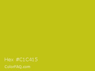Hex #c1c415 Color is a normal yellow color and the nearest color is Key Lime Pie #bfc921. Hex code #c1c415 and RGB value is rgb(193,196,21). In RGB color space, this color is composed of 76% red, 77% green, 8% blue, In CMYK color space, this color is composed of 2% cyan, 0% magenta, 89% yellow , 23% black , In HSL color space, this color has a hue angle of 61° , 81% saturation and 43% lightness.