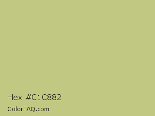Hex #c1c882 Color is a light yellow color and the nearest color is Pine Glade #c7cd90. Hex code #c1c882 and RGB value is rgb(193,200,130). In RGB color space, this color is composed of 76% red, 78% green, 51% blue, In CMYK color space, this color is composed of 4% cyan, 0% magenta, 35% yellow , 22% black , In HSL color space, this color has a hue angle of 66° , 39% saturation and 65% lightness.