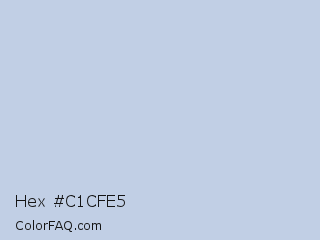 Hex #c1cfe5 Color is a very light blue color and the nearest color is Periwinkle Gray #c3cde6. Hex code #c1cfe5 and RGB value is rgb(193,207,229). In RGB color space, this color is composed of 76% red, 81% green, 90% blue, In CMYK color space, this color is composed of 16% cyan, 10% magenta, 0% yellow , 10% black , In HSL color space, this color has a hue angle of 217° , 41% saturation and 83% lightness.