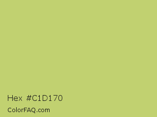 Hex #c1d170 Color is a light yellow color and the nearest color is Wild Willow #b9c46a. Hex code #c1d170 and RGB value is rgb(193,209,112). In RGB color space, this color is composed of 76% red, 82% green, 44% blue, In CMYK color space, this color is composed of 8% cyan, 0% magenta, 46% yellow , 18% black , In HSL color space, this color has a hue angle of 70° , 51% saturation and 63% lightness.