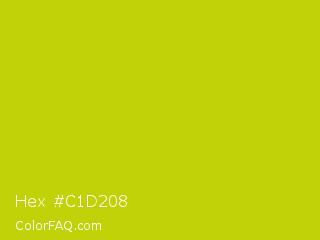 Hex #c1d208 Color is a normal yellow color and the nearest color is Rio Grande #bbd009. Hex code #c1d208 and RGB value is rgb(193,210,8). In RGB color space, this color is composed of 76% red, 82% green, 3% blue, In CMYK color space, this color is composed of 8% cyan, 0% magenta, 96% yellow , 18% black , In HSL color space, this color has a hue angle of 65° , 93% saturation and 43% lightness.