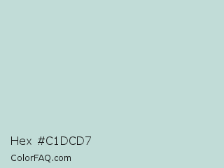 Hex #c1dcd7 Color is a very light cyan color and the nearest color is Paris White #cadcd4. Hex code #c1dcd7 and RGB value is rgb(193,220,215). In RGB color space, this color is composed of 76% red, 86% green, 84% blue, In CMYK color space, this color is composed of 12% cyan, 0% magenta, 2% yellow , 14% black , In HSL color space, this color has a hue angle of 169° , 28% saturation and 81% lightness.