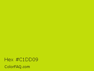 Hex #c1dd09 Color is a normal yellow color and the nearest color is Fuego #bede0d. Hex code #c1dd09 and RGB value is rgb(193,221,9). In RGB color space, this color is composed of 76% red, 87% green, 4% blue, In CMYK color space, this color is composed of 13% cyan, 0% magenta, 96% yellow , 13% black , In HSL color space, this color has a hue angle of 68° , 92% saturation and 45% lightness.