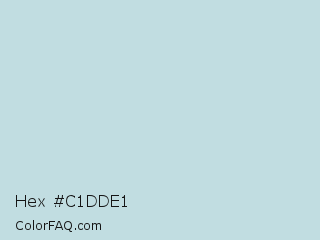 Hex #c1dde1 Color is a very light cyan color and the nearest color is Ziggurat #bfdbe2. Hex code #c1dde1 and RGB value is rgb(193,221,225). In RGB color space, this color is composed of 76% red, 87% green, 88% blue, In CMYK color space, this color is composed of 14% cyan, 2% magenta, 0% yellow , 12% black , In HSL color space, this color has a hue angle of 188° , 35% saturation and 82% lightness.