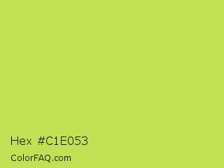 Hex #c1e053 Color is a normal lime color and the nearest color is June Bud #bdda57. Hex code #c1e053 and RGB value is rgb(193,224,83). In RGB color space, this color is composed of 76% red, 88% green, 33% blue, In CMYK color space, this color is composed of 14% cyan, 0% magenta, 63% yellow , 12% black , In HSL color space, this color has a hue angle of 73° , 69% saturation and 60% lightness.