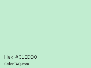 Hex #c1edd0 Color is a very light green color and the nearest color is Edgewater #c8e3d7. Hex code #c1edd0 and RGB value is rgb(193,237,208). In RGB color space, this color is composed of 76% red, 93% green, 82% blue, In CMYK color space, this color is composed of 19% cyan, 0% magenta, 12% yellow , 7% black , In HSL color space, this color has a hue angle of 140° , 55% saturation and 84% lightness.