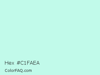 Hex #c1faea Color is a very light green color and the nearest color is Mint Tulip #c4f4eb. Hex code #c1faea and RGB value is rgb(193,250,234). In RGB color space, this color is composed of 76% red, 98% green, 92% blue, In CMYK color space, this color is composed of 23% cyan, 0% magenta, 6% yellow , 2% black , In HSL color space, this color has a hue angle of 163° , 85% saturation and 87% lightness.