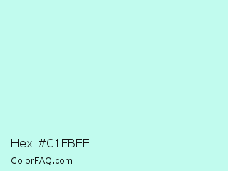 Hex #c1fbee Color is a very light cyan color and the nearest color is Mint Tulip #c4f4eb. Hex code #c1fbee and RGB value is rgb(193,251,238). In RGB color space, this color is composed of 76% red, 98% green, 93% blue, In CMYK color space, this color is composed of 23% cyan, 0% magenta, 5% yellow , 2% black , In HSL color space, this color has a hue angle of 167° , 88% saturation and 87% lightness.