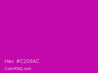 Hex #c209ac Color is a normal magenta color and the nearest color is Heliotrope Magenta #aa00bb. Hex code #c209ac and RGB value is rgb(194,9,172). In RGB color space, this color is composed of 76% red, 4% green, 67% blue, In CMYK color space, this color is composed of 0% cyan, 95% magenta, 11% yellow , 24% black , In HSL color space, this color has a hue angle of 307° , 91% saturation and 40% lightness.
