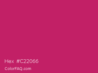 Hex #c22066 Color is a normal rose color and the nearest color is Rose Red #c21e56. Hex code #c22066 and RGB value is rgb(194,32,102). In RGB color space, this color is composed of 76% red, 13% green, 40% blue, In CMYK color space, this color is composed of 0% cyan, 84% magenta, 47% yellow , 24% black , In HSL color space, this color has a hue angle of 334° , 72% saturation and 44% lightness.