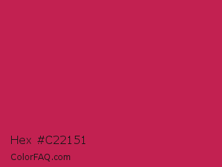 Hex #c22151 Color is a normal rose color and the nearest color is Rose Red #c21e56. Hex code #c22151 and RGB value is rgb(194,33,81). In RGB color space, this color is composed of 76% red, 13% green, 32% blue, In CMYK color space, this color is composed of 0% cyan, 83% magenta, 58% yellow , 24% black , In HSL color space, this color has a hue angle of 342° , 71% saturation and 45% lightness.