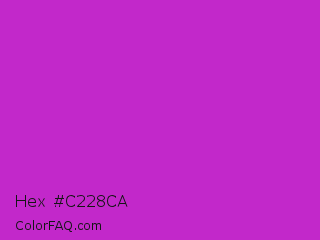 Hex #c228ca Color is a normal magenta color and the nearest color is Steel Pink #cc33cc. Hex code #c228ca and RGB value is rgb(194,40,202). In RGB color space, this color is composed of 76% red, 16% green, 79% blue, In CMYK color space, this color is composed of 4% cyan, 80% magenta, 0% yellow , 21% black , In HSL color space, this color has a hue angle of 297° , 67% saturation and 47% lightness.