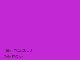 Hex #c228d3 Color is a normal magenta color and the nearest color is Steel Pink #cc33cc. Hex code #c228d3 and RGB value is rgb(194,40,211). In RGB color space, this color is composed of 76% red, 16% green, 83% blue, In CMYK color space, this color is composed of 8% cyan, 81% magenta, 0% yellow , 17% black , In HSL color space, this color has a hue angle of 294° , 68% saturation and 49% lightness.