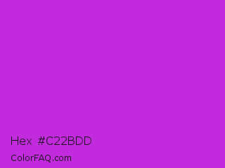 Hex #c22bdd Color is a normal purple color and the nearest color is Steel Pink #cc33cc. Hex code #c22bdd and RGB value is rgb(194,43,221). In RGB color space, this color is composed of 76% red, 17% green, 87% blue, In CMYK color space, this color is composed of 12% cyan, 81% magenta, 0% yellow , 13% black , In HSL color space, this color has a hue angle of 291° , 72% saturation and 52% lightness.