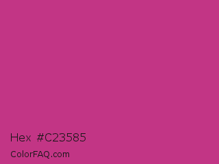 Hex #c23585 Color is a normal magenta color and the nearest color is Medium Red Violet #bb3385. Hex code #c23585 and RGB value is rgb(194,53,133). In RGB color space, this color is composed of 76% red, 21% green, 52% blue, In CMYK color space, this color is composed of 0% cyan, 73% magenta, 31% yellow , 24% black , In HSL color space, this color has a hue angle of 326° , 57% saturation and 48% lightness.