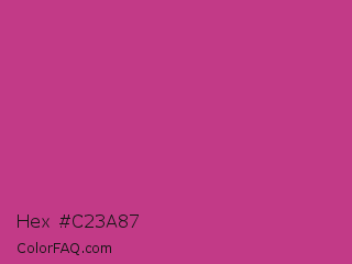 Hex #c23a87 Color is a normal magenta color and the nearest color is Smitten #c84186. Hex code #c23a87 and RGB value is rgb(194,58,135). In RGB color space, this color is composed of 76% red, 23% green, 53% blue, In CMYK color space, this color is composed of 0% cyan, 70% magenta, 30% yellow , 24% black , In HSL color space, this color has a hue angle of 326° , 54% saturation and 49% lightness.