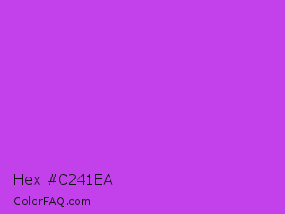Hex #c241ea Color is a normal purple color and the nearest color is Medium Orchid #ba55d3. Hex code #c241ea and RGB value is rgb(194,65,234). In RGB color space, this color is composed of 76% red, 25% green, 92% blue, In CMYK color space, this color is composed of 17% cyan, 72% magenta, 0% yellow , 8% black , In HSL color space, this color has a hue angle of 286° , 80% saturation and 59% lightness.