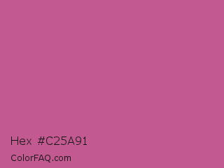 Hex #c25a91 Color is a normal rose color and the nearest color is Mulberry #c54b8c. Hex code #c25a91 and RGB value is rgb(194,90,145). In RGB color space, this color is composed of 76% red, 35% green, 57% blue, In CMYK color space, this color is composed of 0% cyan, 54% magenta, 25% yellow , 24% black , In HSL color space, this color has a hue angle of 328° , 46% saturation and 56% lightness.