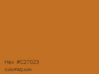 Hex #c27023 Color is a normal orange color and the nearest color is Bourbon #ba6f1e. Hex code #c27023 and RGB value is rgb(194,112,35). In RGB color space, this color is composed of 76% red, 44% green, 14% blue, In CMYK color space, this color is composed of 0% cyan, 42% magenta, 82% yellow , 24% black , In HSL color space, this color has a hue angle of 29° , 69% saturation and 45% lightness.