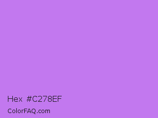 Hex #c278ef Color is a light purple color and the nearest color is Lavender #b57edc. Hex code #c278ef and RGB value is rgb(194,120,239). In RGB color space, this color is composed of 76% red, 47% green, 94% blue, In CMYK color space, this color is composed of 19% cyan, 50% magenta, 0% yellow , 6% black , In HSL color space, this color has a hue angle of 277° , 79% saturation and 70% lightness.