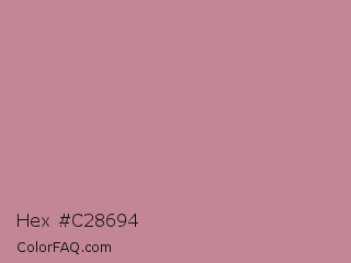 Hex #c28694 Color is a light red color and the nearest color is Puce #cc8899. Hex code #c28694 and RGB value is rgb(194,134,148). In RGB color space, this color is composed of 76% red, 53% green, 58% blue, In CMYK color space, this color is composed of 0% cyan, 31% magenta, 24% yellow , 24% black , In HSL color space, this color has a hue angle of 346° , 33% saturation and 64% lightness.