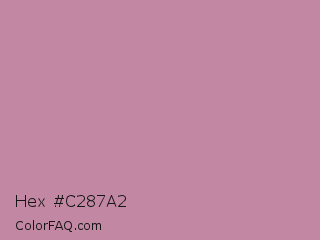 Hex #c287a2 Color is a light rose color and the nearest color is Opera Mauve #b784a7. Hex code #c287a2 and RGB value is rgb(194,135,162). In RGB color space, this color is composed of 76% red, 53% green, 64% blue, In CMYK color space, this color is composed of 0% cyan, 30% magenta, 16% yellow , 24% black , In HSL color space, this color has a hue angle of 333° , 33% saturation and 65% lightness.