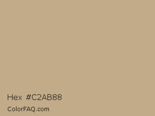 Hex #c2ab88 Color is a light orange color and the nearest color is Indian Khaki #c3b091. Hex code #c2ab88 and RGB value is rgb(194,171,136). In RGB color space, this color is composed of 76% red, 67% green, 53% blue, In CMYK color space, this color is composed of 0% cyan, 12% magenta, 30% yellow , 24% black , In HSL color space, this color has a hue angle of 36° , 32% saturation and 65% lightness.