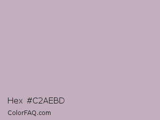 Hex #c2aebd Color is a light magenta color and the nearest color is Lily #c8aabf. Hex code #c2aebd and RGB value is rgb(194,174,189). In RGB color space, this color is composed of 76% red, 68% green, 74% blue, In CMYK color space, this color is composed of 0% cyan, 10% magenta, 3% yellow , 24% black , In HSL color space, this color has a hue angle of 315° , 14% saturation and 72% lightness.