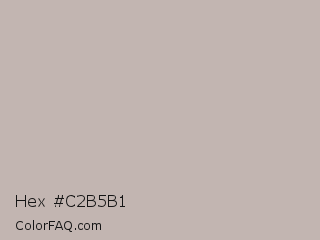 Hex #c2b5b1 Color is a light red color and the nearest color is Tide #bfb8b0. Hex code #c2b5b1 and RGB value is rgb(194,181,177). In RGB color space, this color is composed of 76% red, 71% green, 69% blue, In CMYK color space, this color is composed of 0% cyan, 7% magenta, 9% yellow , 24% black , In HSL color space, this color has a hue angle of 14° , 12% saturation and 73% lightness.