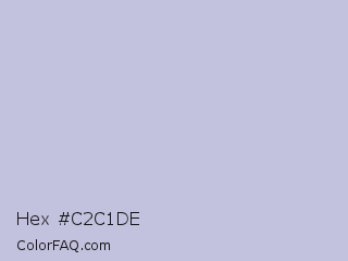 Hex #c2c1de Color is a very light indigo color and the nearest color is Blue Haze #bfbed8. Hex code #c2c1de and RGB value is rgb(194,193,222). In RGB color space, this color is composed of 76% red, 76% green, 87% blue, In CMYK color space, this color is composed of 13% cyan, 13% magenta, 0% yellow , 13% black , In HSL color space, this color has a hue angle of 242° , 31% saturation and 81% lightness.