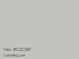 Hex #c2c3bf Color is a light lime color and the nearest color is Gray Nickel #c3c3bd. Hex code #c2c3bf and RGB value is rgb(194,195,191). In RGB color space, this color is composed of 76% red, 76% green, 75% blue, In CMYK color space, this color is composed of 1% cyan, 0% magenta, 2% yellow , 24% black , In HSL color space, this color has a hue angle of 75° , 3% saturation and 76% lightness.