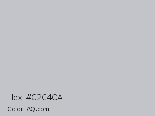 Hex #c2c4ca Color is a light blue color and the nearest color is Lavender Gray #c4c3d0. Hex code #c2c4ca and RGB value is rgb(194,196,202). In RGB color space, this color is composed of 76% red, 77% green, 79% blue, In CMYK color space, this color is composed of 4% cyan, 3% magenta, 0% yellow , 21% black , In HSL color space, this color has a hue angle of 225° , 7% saturation and 78% lightness.