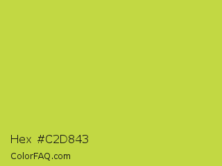 Hex #c2d843 Color is a normal yellow color and the nearest color is June Bud #bdda57. Hex code #c2d843 and RGB value is rgb(194,216,67). In RGB color space, this color is composed of 76% red, 85% green, 26% blue, In CMYK color space, this color is composed of 10% cyan, 0% magenta, 69% yellow , 15% black , In HSL color space, this color has a hue angle of 69° , 66% saturation and 55% lightness.