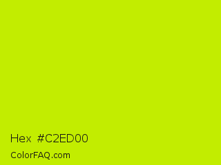 Hex #c2ed00 Color is a normal lime color and the nearest color is Las Palmas #c6e610. Hex code #c2ed00 and RGB value is rgb(194,237,0). In RGB color space, this color is composed of 76% red, 93% green, 0% blue, In CMYK color space, this color is composed of 18% cyan, 0% magenta, 100% yellow , 7% black , In HSL color space, this color has a hue angle of 71° , 100% saturation and 46% lightness.