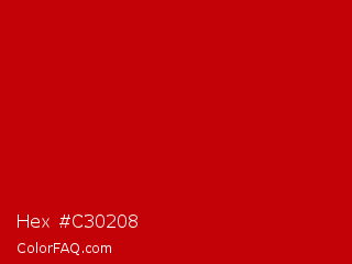 Hex #c30208 Color is a normal red color and the nearest color is Guardsman Red #ba0101. Hex code #c30208 and RGB value is rgb(195,2,8). In RGB color space, this color is composed of 76% red, 1% green, 3% blue, In CMYK color space, this color is composed of 0% cyan, 99% magenta, 96% yellow , 24% black , In HSL color space, this color has a hue angle of 358° , 98% saturation and 39% lightness.