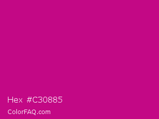 Hex #c30885 Color is a normal magenta color and the nearest color is Red Violet #c71585. Hex code #c30885 and RGB value is rgb(195,8,133). In RGB color space, this color is composed of 76% red, 3% green, 52% blue, In CMYK color space, this color is composed of 0% cyan, 96% magenta, 32% yellow , 24% black , In HSL color space, this color has a hue angle of 320° , 92% saturation and 40% lightness.
