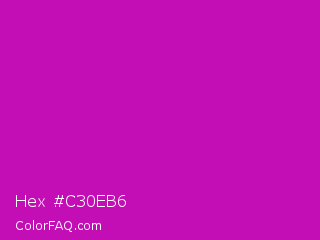 Hex #c30eb6 Color is a normal magenta color and the nearest color is Deep Magenta #cc00cc. Hex code #c30eb6 and RGB value is rgb(195,14,182). In RGB color space, this color is composed of 76% red, 5% green, 71% blue, In CMYK color space, this color is composed of 0% cyan, 93% magenta, 7% yellow , 24% black , In HSL color space, this color has a hue angle of 304° , 87% saturation and 41% lightness.