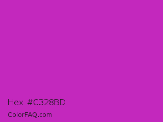 Hex #c328bd Color is a normal magenta color and the nearest color is Steel Pink #cc33cc. Hex code #c328bd and RGB value is rgb(195,40,189). In RGB color space, this color is composed of 76% red, 16% green, 74% blue, In CMYK color space, this color is composed of 0% cyan, 79% magenta, 3% yellow , 24% black , In HSL color space, this color has a hue angle of 302° , 66% saturation and 46% lightness.
