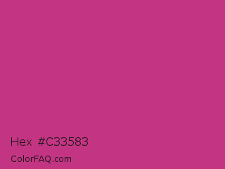 Hex #c33583 Color is a normal magenta color and the nearest color is Medium Red Violet #bb3385. Hex code #c33583 and RGB value is rgb(195,53,131). In RGB color space, this color is composed of 76% red, 21% green, 51% blue, In CMYK color space, this color is composed of 0% cyan, 73% magenta, 33% yellow , 24% black , In HSL color space, this color has a hue angle of 327° , 57% saturation and 49% lightness.