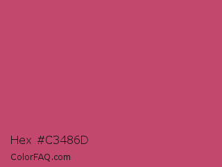 Hex #c3486d Color is a normal rose color and the nearest color is Fuchsia Rose #c74375. Hex code #c3486d and RGB value is rgb(195,72,109). In RGB color space, this color is composed of 76% red, 28% green, 43% blue, In CMYK color space, this color is composed of 0% cyan, 63% magenta, 44% yellow , 24% black , In HSL color space, this color has a hue angle of 342° , 51% saturation and 52% lightness.