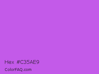 Hex #c35ae9 Color is a light purple color and the nearest color is Medium Orchid #ba55d3. Hex code #c35ae9 and RGB value is rgb(195,90,233). In RGB color space, this color is composed of 76% red, 35% green, 91% blue, In CMYK color space, this color is composed of 16% cyan, 61% magenta, 0% yellow , 9% black , In HSL color space, this color has a hue angle of 284° , 76% saturation and 63% lightness.