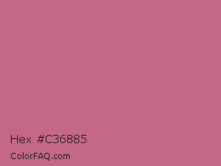 Hex #c36885 Color is a normal rose color and the nearest color is Cinnamon Satin #cd607e. Hex code #c36885 and RGB value is rgb(195,104,133). In RGB color space, this color is composed of 76% red, 41% green, 52% blue, In CMYK color space, this color is composed of 0% cyan, 47% magenta, 32% yellow , 24% black , In HSL color space, this color has a hue angle of 341° , 43% saturation and 59% lightness.