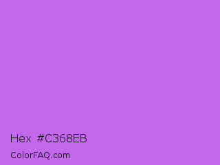 Hex #c368eb Color is a light purple color and the nearest color is Rich Lilac #b666d2. Hex code #c368eb and RGB value is rgb(195,104,235). In RGB color space, this color is composed of 76% red, 41% green, 92% blue, In CMYK color space, this color is composed of 17% cyan, 56% magenta, 0% yellow , 8% black , In HSL color space, this color has a hue angle of 282° , 77% saturation and 66% lightness.