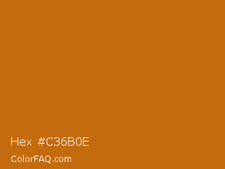 Hex #c36b0e Color is a normal orange color and the nearest color is Alloy Orange #c46210. Hex code #c36b0e and RGB value is rgb(195,107,14). In RGB color space, this color is composed of 76% red, 42% green, 5% blue, In CMYK color space, this color is composed of 0% cyan, 45% magenta, 93% yellow , 24% black , In HSL color space, this color has a hue angle of 31° , 87% saturation and 41% lightness.