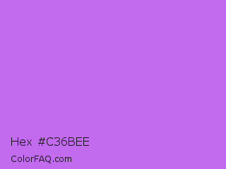 Hex #c36bee Color is a light purple color and the nearest color is Lavender #b57edc. Hex code #c36bee and RGB value is rgb(195,107,238). In RGB color space, this color is composed of 76% red, 42% green, 93% blue, In CMYK color space, this color is composed of 18% cyan, 55% magenta, 0% yellow , 7% black , In HSL color space, this color has a hue angle of 280° , 79% saturation and 68% lightness.