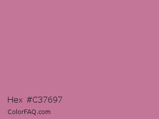 Hex #c37697 Color is a light rose color and the nearest color is Charm #d47494. Hex code #c37697 and RGB value is rgb(195,118,151). In RGB color space, this color is composed of 76% red, 46% green, 59% blue, In CMYK color space, this color is composed of 0% cyan, 39% magenta, 23% yellow , 24% black , In HSL color space, this color has a hue angle of 334° , 39% saturation and 61% lightness.
