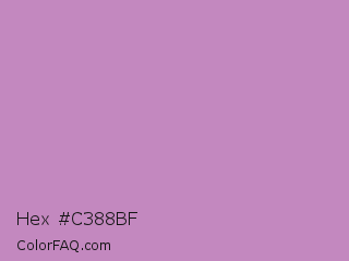 Hex #c388bf Color is a light magenta color and the nearest color is African Violet #b284be. Hex code #c388bf and RGB value is rgb(195,136,191). In RGB color space, this color is composed of 76% red, 53% green, 75% blue, In CMYK color space, this color is composed of 0% cyan, 30% magenta, 2% yellow , 24% black , In HSL color space, this color has a hue angle of 304° , 33% saturation and 65% lightness.