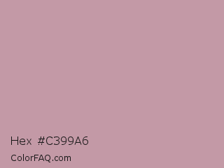 Hex #c399a6 Color is a light rose color and the nearest color is Viola #cb8fa9. Hex code #c399a6 and RGB value is rgb(195,153,166). In RGB color space, this color is composed of 76% red, 60% green, 65% blue, In CMYK color space, this color is composed of 0% cyan, 22% magenta, 15% yellow , 24% black , In HSL color space, this color has a hue angle of 341° , 26% saturation and 68% lightness.